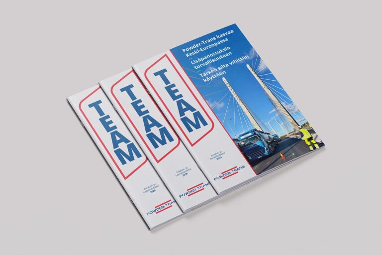 Powder-Trans-konsernin TEAM-asiakas- ja henkilöstölehti on ilmestynyt. Myös tänä vuonna se on 24-sivuinen lehti täynnä uutisia ja reportaaseja yrityksestä ja jauhekuljetusalasta. Tämänvuotinen numero koostuu muun muassa